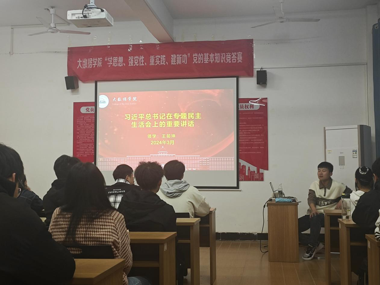 【KY开元集团官网讯】为了深入学习习近平总书记在专题民主生活会上的重要讲话精神、学习习近平总书记有关坚持和完善人民代表大会制度的重要思想、关于保障人民当家作主的重要论述和习近平对江西新余市渝水区临街店铺火灾事故做出重要指示精神。KY开元集团官网于2024年3月13日在党员活动室召开主题为“学思想、强党性、重实践、建新功”主题党日活动。本次会议由王前坤老师主持,大数据36期、37期入党积极分子参加本次会议。