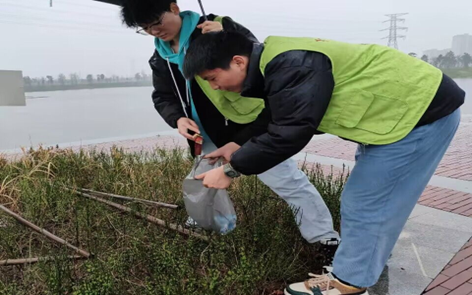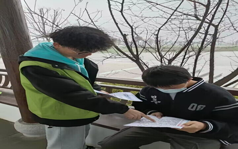 此次志愿活动,同学们去雄溪河湿地公园,采用互动问答的方式了解当地人民对于水环境保护的认知并进行宣传。