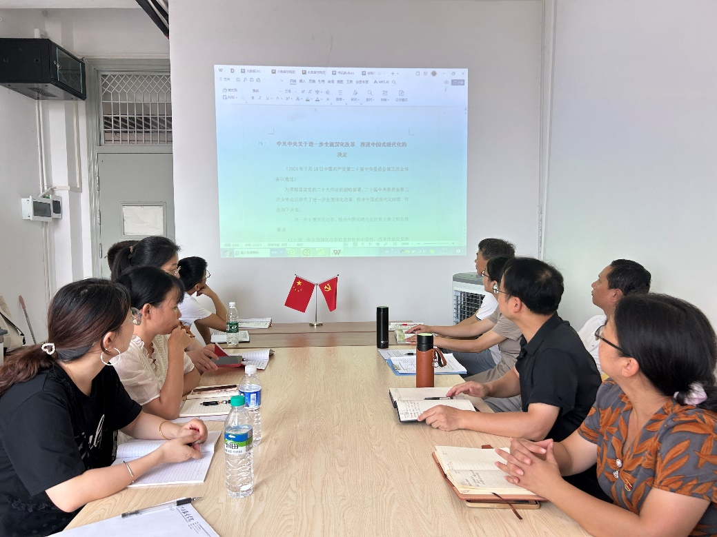 随后,学院院长、党总支副书记徐照兴传达了《中共中央关于进一步全面深化改革、推进中国式现代化的决定》的重要精神。他指出,党中央的《决定》系统部署了当前和未来一个时期的改革任务,强调要以经济体制改革为牵引,推动社会各领域的深刻变革。他表示,改革的核心在于坚持党的领导和中国特色社会主义制度,要通过改革完善和发展社会主义市场经济体制,健全经济治理体系,为实现高质量发展提供制度保障。