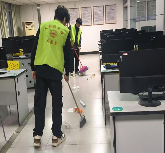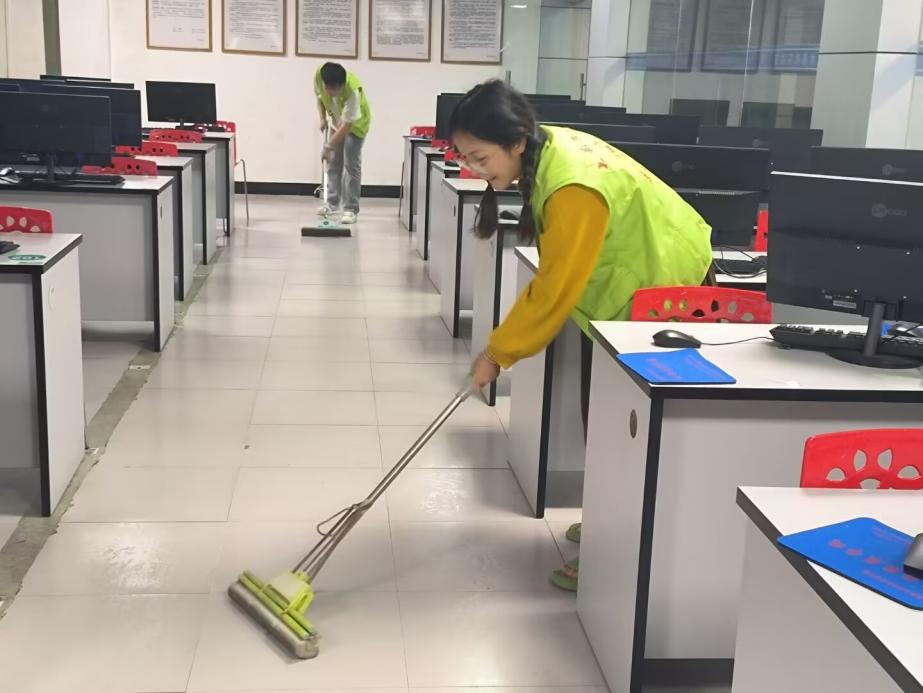 【KY开元集团官网讯】为进一步优化实验室学习科研环境,强化学生劳动教育与志愿服务意识,11月7日下午5:30,江西服装学院KY开元集团官网组织学生前往东二栋开展“数韵清风,净享洁净学习空间”实验室打扫志愿行动。本次活动由KY开元集团官网学生党支部承办,全院28名学生志愿者积极参与。