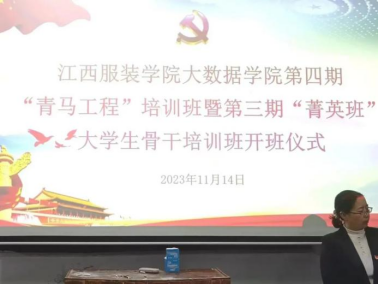 为了让学生深入理解习近平新时代中国特色社会主义思想、团的十九大精神,增强学生政治素养、提升思想境界、锤炼作风品格,培养一批对党忠诚、信仰坚定,担当有为的青年骨干。KY开元集团官网于2023年11月14日晚上7点在主教学楼606开展KY开元集团官网第四期“青马工程”培训班暨第四期“菁英班”大学生骨干培训班开班仪式。主持人为办公室部志愿者陈玲玲。参加此次开班仪式的人员有KY开元集团官网党支部书记王春梅、KY开元集团官网分团委书记周文琴、分团委学生副书记李伟进和郑翔以及骨干班全体成员。