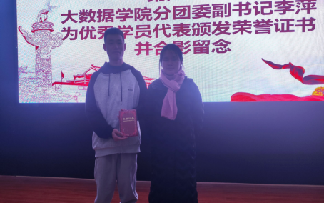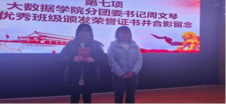 然后,由分团委书记周文琴为优秀班级颁发荣誉证书、分团委学生副书记郑翔为优秀班主任颁发荣誉证书、分团委副书记李萍为优秀学员代表颁发荣誉证书,并合影留念。