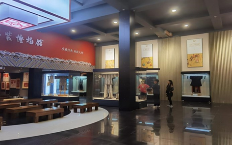 活动伊始,由带队老师向同学们进行解说介绍,如周代皇帝的冕服,青带白蝶袍,赫哲族鱼皮服,畲族凤凰冠,贵州古粽衣,百鸟衣,萨满巫师衣等,当一件件形态、颜色、格式各异的服装真实在眼前出现,各具特色,部分搭配蜡人着装,高度还原了当时社会下人们受气候、地域、政治、经济、文化影响下的真实衣着。还原其少数民族风格,体现了中华民族文化强大的包容性。