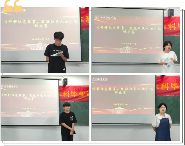 本次活动的表现形式多种多样,参赛选手通过讲述、情景表演、演讲等多种形式表现,参赛选手通过讲述英烈事迹,引导同学们从英烈事迹中汲取信仰的力量、真理的力量、智慧的力量,在讴歌英雄中唱响社会主义核心价值观主旋律,用拼搏奋斗和热血担当唱响新时代青春之歌的最强音。