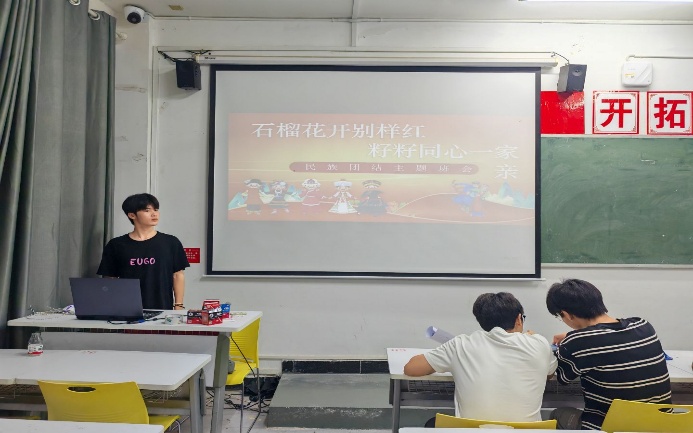 大一主题班会以“石榴花开别样红,籽籽同心一家亲”为主题。班会以民族知识问答开场,涵盖民族数量、分布及文化习俗等内容,激发了同学们的学习兴趣。随后深入讲解了我国民族政策,包括民族分布特点、“五个认同”等重要理念,并分享了阿尼帕·阿力马洪和买买提江·吾买尔两位民族团结楷模的感人事迹。最后结合真实案例,引导同学们树立正确的宗教观,警惕邪教渗透。