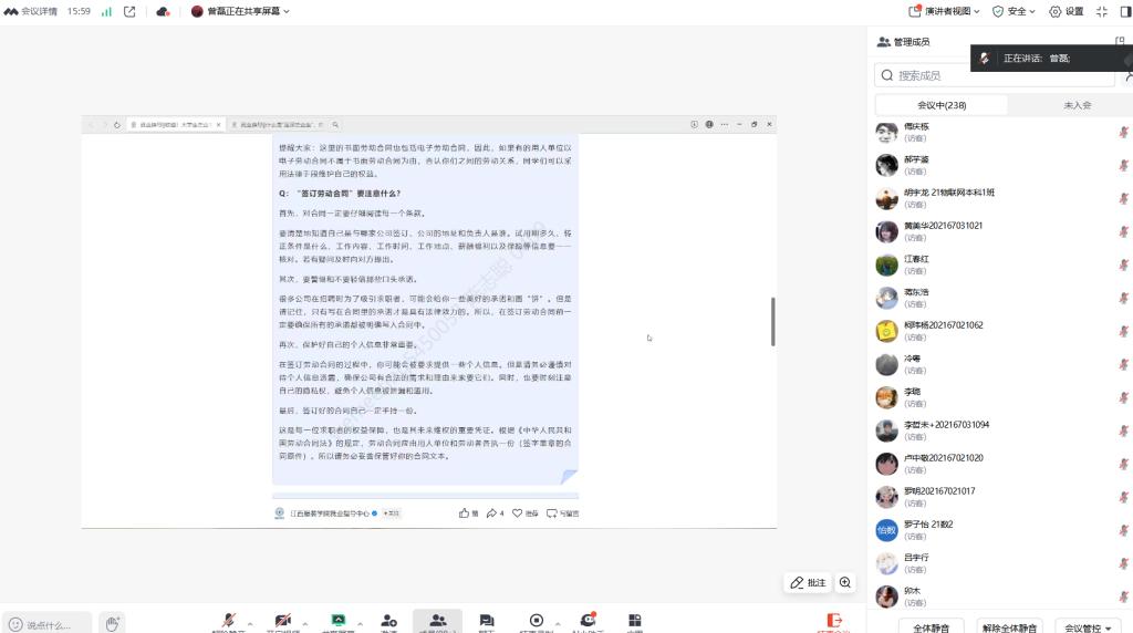 会上,还特别邀请了优秀校友韦平先生进行就业经验分享。韦先生结合自己的就业经历和工作心得,向毕业生们传授了宝贵的就业经验和职场感悟。校友的分享生动而具体,让毕业生们受益匪浅。