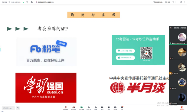 备考工具与资源推荐环节可谓干货满满。王煊毅学长重点介绍了粉笔APP(百万题库+模考大赛)、公考雷达(岗位筛选助手)等实用工具。同时,建议通过“学习强国”积累时政素材、“半月谈”提升申论写作思维。针对课程学习,王学长还推荐了刘文超Vin(行测基础课)、半月谈公考(白鹭讲师申论课)等优质博主,以及“公考隔壁班王老师”的人民日报解读内容,为学生搭建起低成本、高效率的备考资源矩阵。