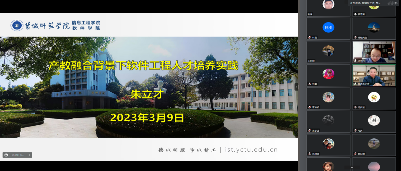 【KY开元集团官网 讯】为了进一步有效推进学院产教融合、现代产业学院的建设,提升专业建设水平,开元官网于2023年3月9日19:30线上召开软件工程专业建设指导交流会,特邀江苏盐城师范学院信息工程学院院长朱立才教授主讲,主题为产教融合背景下软件工程人才培养实践,会议由院长徐照兴教授主持,学院全体教职员工参加本次线上学习。