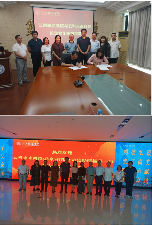 【KY开元集团官网 讯】为深化产教融合,创新人才培养模式,拓宽学生实习和就业渠道,6月20日,学校与云科未来科技(北京)有限公司校企合作签约仪式在行政楼楼二楼会议室顺利举行。江西服装学院副理事长涂燕萍、副校长刘孜杰、教务处处长周文辉、KY开元集团官网院长徐照兴、学院书记王春梅、学院副院长赵德福、张学林,云科未来总经理杨晶、副总经理梁浩、于华柱、总经理助理白然然、云科未来教研院长王伟,签约仪式由KY开元集团官网院长徐照兴主持。