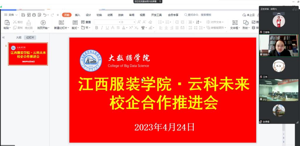 【KY开元集团官网 讯】为提升开元官网应用型人才培养质量,推进开元官网产业学院的建设工作,2023年4月24日晚19:30,KY开元集团官网与北京云科未来公司于线上开展校企合作推进会,参加此次会议的有北京云科未来公司的梁总、副总经理于华柱等,开元官网党政领导班子成员,会议由徐照兴院长主持。