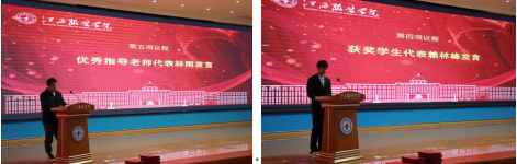 林刚老师作为优秀指导教师代表作了精彩发言,向获奖的同学表示最真挚的祝贺,充分肯定了同学们的学习能力、专业水平、团队协作、不懈努力和勇于拼搏的精神,坦言“比赛本身不是目的,而是要通过比赛来促进学习和成长”,感谢学院的支持和鼓励。